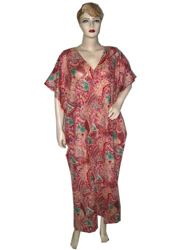 Womens Lounge Wear Red Caftan Sheer Cotton Casual Beach Wear Dress Cover Up Review