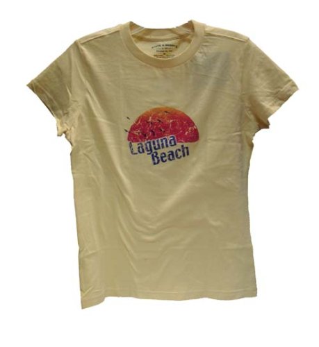 NEW Steve & Barry's Vintage T-Shirts Yellow Laguna Beach. Misses Size: Large 100% Cotton